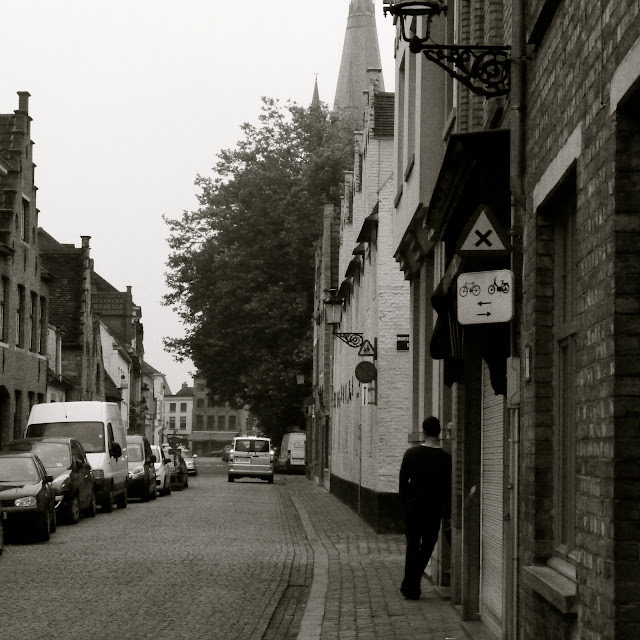 | Un homme immobile. Une rue à Bruges. Ce n'est qu'un inconnu. |